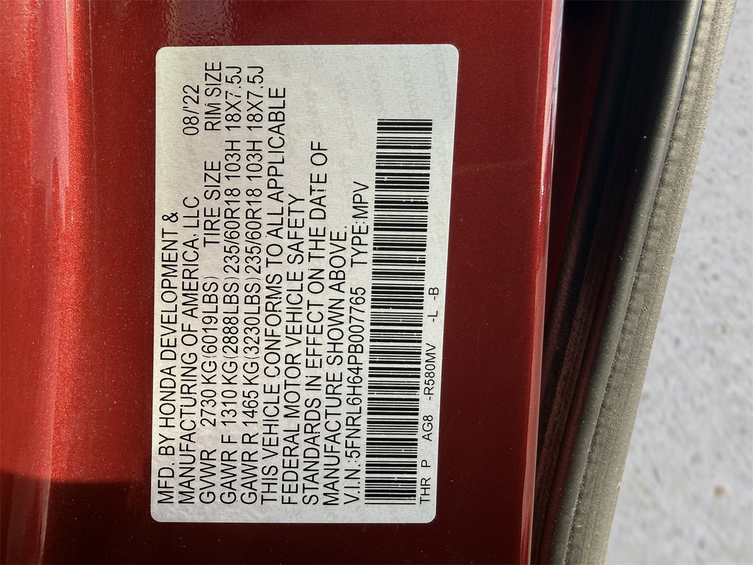 5FNRL6H64PB007765