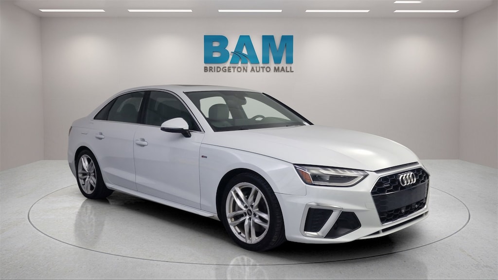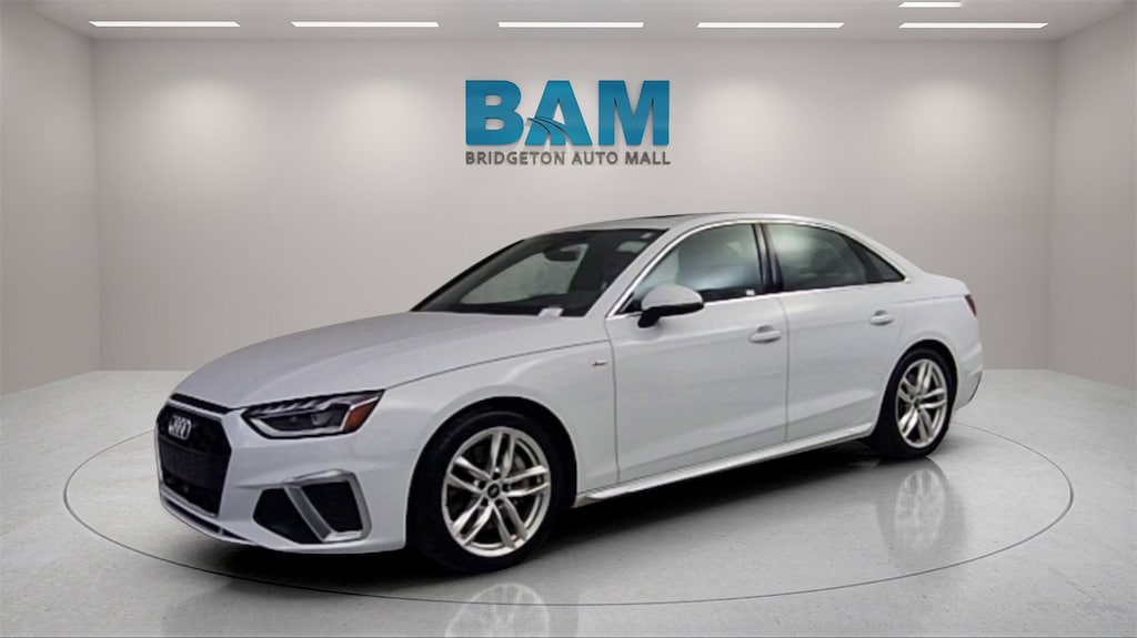 Bridgeton Automall is proud to present you with another True Market Priced Pre-Owned Vehicle. This 2023 Audi A4 45 S line Premium Plus quattro is loaded with the following Factory Options: 7-Speed Automatic S tronic, quattro, Rock Gray w/Leather Seating Surfaces, Brake assist, Delay-off headlights, Electronic Stability Control, Exterior Parking Camera Rear, Power moonroof, and Wheels: 18 5-Double-Spoke Design 7-Speed Automatic S tronic, quattro, Rock Gray w/Leather Seating Surfaces, Brake assist, Delay-off headlights, Electronic Stability Control, Exterior Parking Camera Rear, Power moonroof, Wheels: 18 5-Double-Spoke Design, 10 Speakers, 4-Wheel Disc Brakes, ABS brakes, Air Conditioning, AM/FM radio, Anti-whiplash front head restraints, Audi smartphone interface (Apple CarPlay/Android Auto), Auto-dimming Rear-View mirror, Automatic temperature control, Bumpers: body-color, Compass, Dual front impact airbags, Dual front side impact airbags, Emergency communication system: Audi connect CARE, Four wheel independent suspension, Front anti-roll bar, Front Bucket Seats, Front Center Armrest, Front dual zone A/C, Front reading lights, Garage door transmitter: HomeLink, Genuine wood dashboard insert, Genuine wood door panel insert, Heated door mirrors, Heated front seats, Heated Front Sport Bucket Seats, Illuminated entry, Knee airbag, Leather Seating Surfaces, Leather Shift Knob, Leather steering wheel, Low tire pressure warning, Occupant sensing airbag, Outside temperature display, Overhead airbag, Overhead console, Panic alarm, Passenger vanity mirror, Power door mirrors, Power driver seat, Power passenger seat, Power steering, Power windows, Radio data system, Radio: Audi Sound System, Rain sensing wipers, Rear air conditioning, Rear anti-roll bar, Rear reading lights, Rear seat center armrest, Rear window defroster, Remote keyless entry, Speed control, Speed-sensing steering, Speed-Sensitive Wipers, Split folding rear seat, Steering wheel mounted audio controls, Tachometer, Telescoping steering wheel, Tilt steering wheel, Traction control, Trip computer, Turn signal indicator mirrors, and Variably intermittent wipers!!