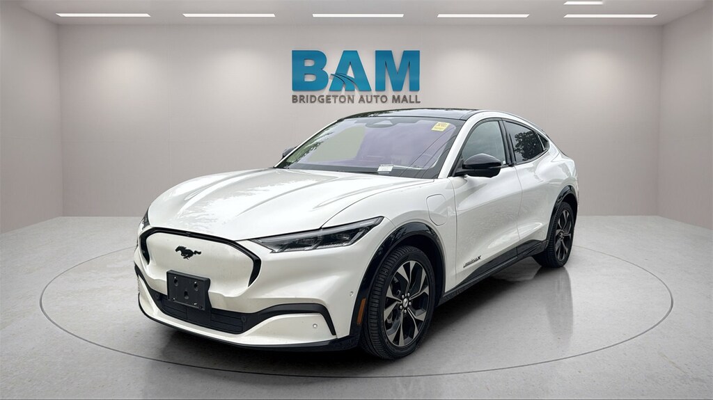 2021 Ford Mustang Mach-E Premium AWD (Extended Range)Non-Smoker | Garage KeptBridgeton Automall is proud to present this True Market Priced Pre-Owned 2021 Ford Mustang Mach-E Premium AWD (Extended Range), finished in Star White Metallic Tri-Coat over Light Gray Perforated ActiveX. This garage-kept, non-smoker example blends quiet electric performance, premium comfort, and cutting-edge technology for effortless daily driving.Key Factory Options & FeaturesExtended Range Battery with dual-motor AWD19 aluminum wheels with painted pocketsPanoramic fixed-glass roofPerforated ActiveX upholstery with heated, power front seats (driver memory)Heated, soft-wrapped steering wheelPerformance & CapabilityDual-motor all-wheel drive with smooth single-speed operationDrive Modes and One-Pedal Drive for confident, precise controlDC fast-charge capable for convenient long-distance travelLuxury & ComfortDual-zone automatic climate controlSplit-folding rear seat and generous cargo spaceAmbient lighting and auto-dim rearview mirrorTechnology & ConnectivitySYNC 4A with a 15.5 touchscreen and EV routingConnected built-in navigationB&O 10-speaker premium audioWireless charging pad, Phone as a Key, FordPass Connect Wi-FiUSB-A/USB-C ports in first and second rows, Intelligent Access with push-button startSafety & Driver AssistanceFord Co-Pilot360 Active 2.0 PrepAdvanceTrac stability/traction controlComprehensive airbag protectionTPMS, SOS Post-Crash Alert, LATCHLED projector headlamps, rain-sensing wipers, wiper-activated headlightsClosingThis Non-Smoker, Garage-Kept 2021 Mustang Mach-E Premium AWD (Extended Range) delivers refined EV luxury, advanced tech, and confident all-weather performance. Contact Bridgeton Automall today to schedule your test drive.Short-Form (Marketplace / Quick Scan)2021 Ford Mustang Mach-E Premium AWD (Extended Range)Non-Smoker | Garage Kept Star White Metallic Tri-Coat Light Gray ActiveXPerformance: Dual-motor AWD, Extended Range battery, One-Pedal Drive, DC fast-charge capableLuxury: Panoramic fixed-glass roof, heated power front seats (driver memory), heated steering wheel, dual-zone climateTech: SYNC 4A w/15.5 screen, B&O 10-speaker audio, built-in navigation, wireless charging, Phone as a Key, FordPass Wi-FiSafety: Co-Pilot360 Active 2.0 Prep, AdvanceTrac, comprehensive airbags, LED projector headlamps, rain-sensing wipersSee it today at Bridgeton Automall experience the Mach-E Premium!