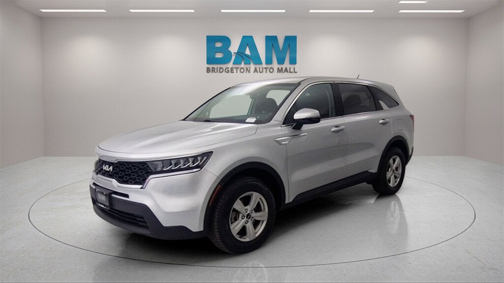 Bridgeton Automall is proud to present you with another True Market Priced Pre-Owned Vehicle. This 2022 Kia Sorento LX CERTIFIED PRE-OWNED is loaded with the following Factory Options: CERTIFIED PRE-OWNED Certified and AWD CERTIFIED PRE-OWNED Certified, AWD, 3rd row seats: split-bench, 4-Wheel Disc Brakes, 4.081 Axle Ratio, 6 Speakers, 7.0J x 17 Alloy Wheels, ABS brakes, Air Conditioning, Alloy wheels, AM/FM radio, Apple CarPlay & Android Auto, Auto High-beam Headlights, Brake assist, Bumpers: body-color, Cargo Net, Carpeted Floor Mats, Cloth Seat Trim, Delay-off headlights, Driver door bin, Driver vanity mirror, Dual front impact airbags, Dual front side impact airbags, Electronic Stability Control, Exterior Parking Camera Rear, Four wheel independent suspension, Front anti-roll bar, Front Bucket Seats, Front Center Armrest, Front reading lights, Fully automatic headlights, Heated door mirrors, Illuminated entry, Knee airbag, Low tire pressure warning, Occupant sensing airbag, Outside temperature display, Overhead airbag, Overhead console, Panic alarm, Passenger door bin, Passenger vanity mirror, Power door mirrors, Power steering, Power windows, Radio data system, Radio: AM/FM Audio System, Rear anti-roll bar, Rear reading lights, Rear seat center armrest, Rear window defroster, Rear window wiper, Remote keyless entry, Security system, Speed control, Speed-sensing steering, Split folding rear seat, Spoiler, Steering wheel mounted audio controls, Tachometer, Telescoping steering wheel, Tilt steering wheel, Traction control, Trip computer, Turn signal indicator mirrors, and Variably intermittent wipers!!