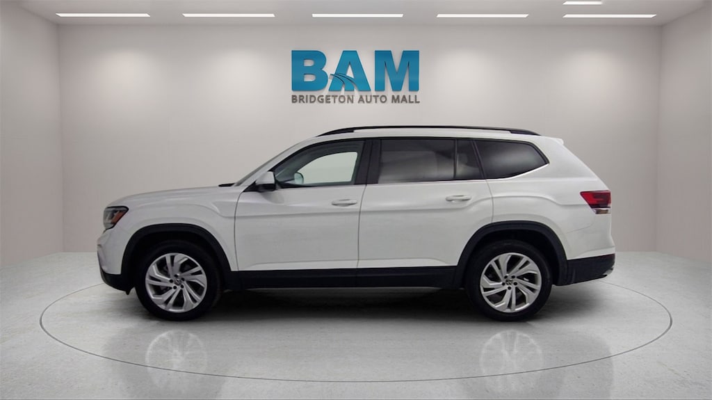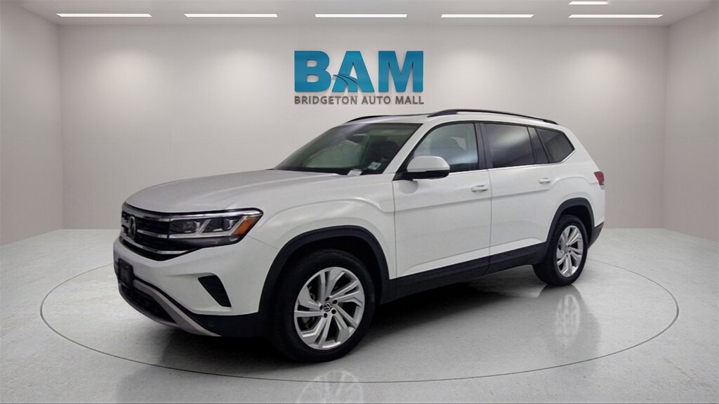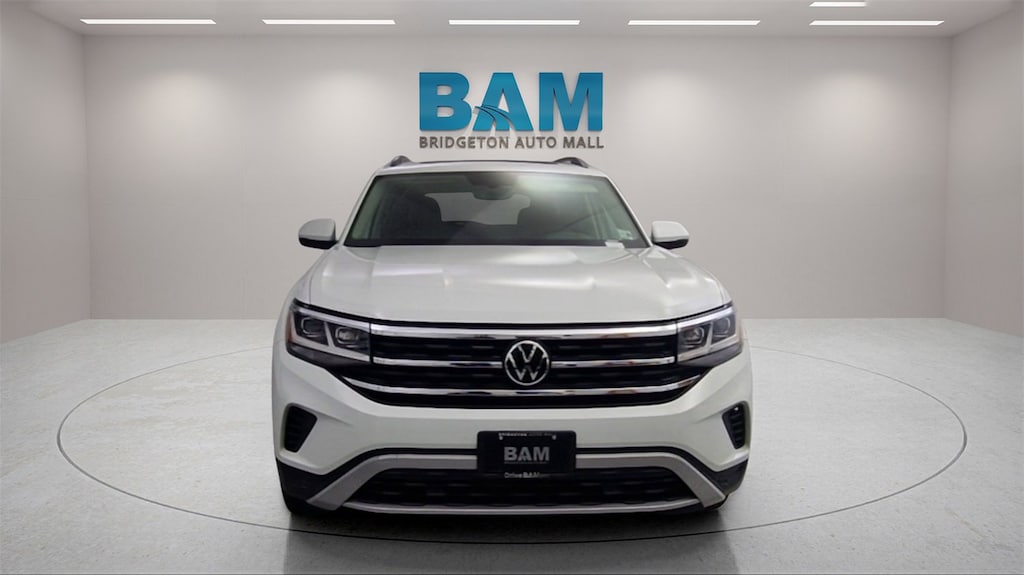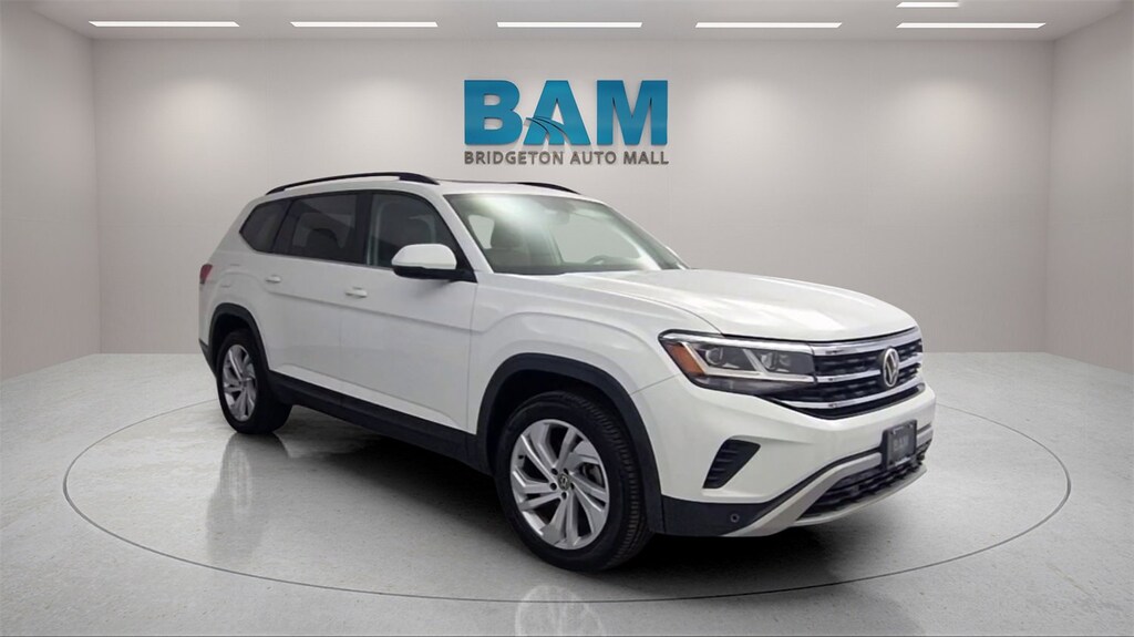 Bridgeton Automall is proud to present you with another True Market Priced Pre-Owned Vehicle. This 2021 Volkswagen Atlas 3.6L V6 SE w/Technology is loaded with the following Factory Options: Panoramic Sunroof Package (Panoramic Sunroof), Alloy wheels, Brake assist, Electronic Stability Control, Exterior Parking Camera Rear, Forward collision: FCW w/Autonomous Emergency Braking mitigation, Fully automatic headlights, Passenger door bin, Power Liftgate, and Wheels: 20 5-Spoke Silver Alloy Panoramic Sunroof Package (Panoramic Sunroof), Alloy wheels, Brake assist, Electronic Stability Control, Exterior Parking Camera Rear, Forward collision: FCW w/Autonomous Emergency Braking mitigation, Fully automatic headlights, Passenger door bin, Power Liftgate, Wheels: 20 5-Spoke Silver Alloy, 3.60 Axle Ratio, 3rd row seats: split-bench, 4-Wheel Disc Brakes, 6 Speakers, ABS brakes, Air Conditioning, Auto-dimming Rear-View mirror, Automatic temperature control, Bumpers: body-color, Compass, Driver vanity mirror, Dual front impact airbags, Dual front side impact airbags, Emergency communication system: VW Car-Net services (capabilities require enrollment or subscription), Four wheel independent suspension, Front anti-roll bar, Front Bucket Seats, Front Center Armrest, Front dual zone A/C, Front fog lights, Heated Comfort Front Bucket Seats, Heated door mirrors, Heated front seats, Illuminated entry, Leather Shift Knob, Low tire pressure warning, Occupant sensing airbag, Outside temperature display, Overhead airbag, Overhead console, Panic alarm, Passenger vanity mirror, Perforated V-Tex Leatherette Seating Surfaces, Power door mirrors, Power driver seat, Power steering, Power windows, Radio data system, Rain sensing wipers, Rear air conditioning, Rear anti-roll bar, Rear reading lights, Rear seat center armrest, Rear window defroster, Rear window wiper, Remote keyless entry, Roof rack: rails only, Security system, Speed control, Speed-sensing steering, Split folding rear seat, Spoiler, Standard Suspension, Steering wheel mounted audio controls, Tachometer, Telescoping steering wheel, Tilt steering wheel, Traction control, Trip computer, Turn signal indicator mirrors, and Variably intermittent wipers!!